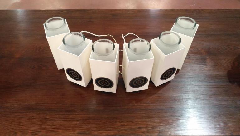 Disegnate da Angelo Lelli nel 1968 e prodotte dalla sua azienda Arredoluce a Monza , sono difficili da reperire nel mercato antiquariale in numero elevato . Le nostre 6 sono in ottime condizioni e funzionanti
