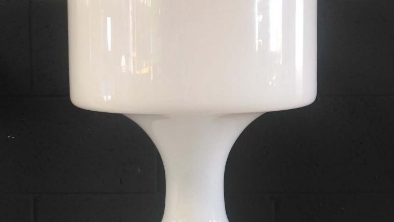 coppia di lampade disegnate da Carlo Nason per Mazzega negli anni '70, sono realizzate in vetro opalino bianco lucido con diffusore interno a coppa.