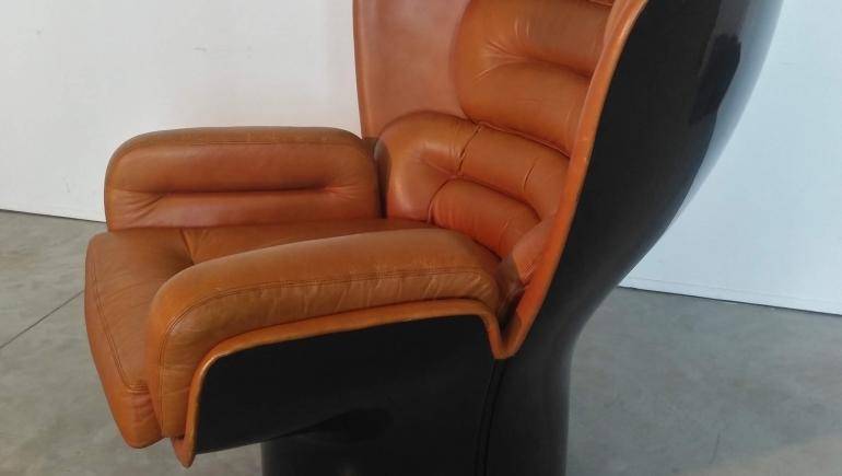 la scocca progettata in vetroresina è girevole , il rivestimento interno ed i cuscini sono in pelle , la nostra arrivata a noi in ottime condizioni , è realizzata nella bellissima versione nera e pelle color cuoio, 1968 circa .
